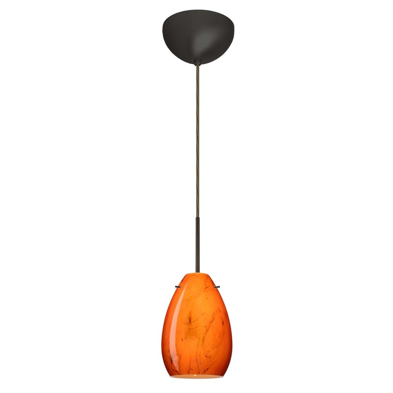 The Pera 6 is a curvy bell-bottomed shape, that fits nicely into any contemporary design. Our Habanero glass is a warm toned cased glass, with inner opal and a glossy finish. The color of vibrant Persimmon is accented by flowing marbleized black lines, and nestled between the inner opal and outer clear layers. When lit the glass is vitalizing as well as stylish, that adds appeal to any environment. This blown glass is handcrafted by a skilled artisan, utilizing century-old techniques passed down from generation to generation. Each piece of this dcor has its own artistic nature that can be individually appreciated. The cord pendant fixture is equipped with a 10′ SVT cord set and an “Easy Install” dome monopoint canopy. These stylish and functional luminaries are offered in a beautiful brushed Bronze finish.