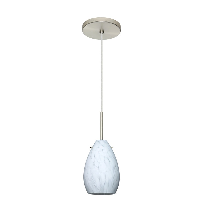 The Pera 6 is a curvy bell-bottomed shape, that fits nicely into any contemporary design. Our Carrera glass is a classic yet modern dcor that gives off a soft white light. Clear molten glass is rolled in alabaster powder like frit, and then blown into shape with a semi-clear frosted white inner finish. This dcor is created by rolling molten glass in small bits of white called frit. The smooth satin finish on the clear outer layer is a result of an extensive etching process. This blown glass is handcrafted by a skilled artisan, utilizing century-old techniques passed down from generation to generation. Each piece of this dcor has its own artistic nature that can be individually appreciated. The cord pendant fixture is equipped with a 10′ SVT cord set and a low Profile flat monopoint canopy. These stylish and functional luminaries are offered in a beautiful Satin Nickel finish.