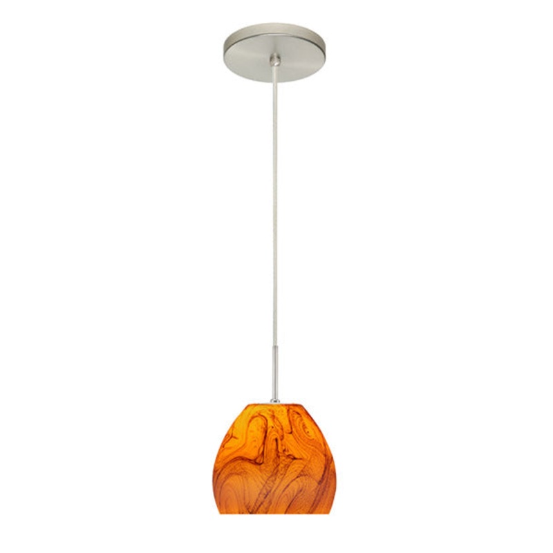 The Bolla is a compact handcrafted glass, softly radiused to fit gracefully into contemporary spaces. Our Habanero glass is a warm toned cased glass, with inner opal and a glossy finish. The color of vibrant Persimmon is accented by flowing marbleized black lines, and nestled between the inner opal and outer clear layers. When lit the glass is vitalizing as well as stylish, that adds appeal to any environment. This blown glass is handcrafted by a skilled artisan, utilizing century-old techniques passed down from generation to generation. Each piece of this dcor has its own artistic nature that can be individually appreciated. The cord pendant fixture is equipped with a 10′ SVT cord set and a low Profile flat monopoint canopy. These stylish and functional luminaries are offered in a beautiful Satin Nickel finish.