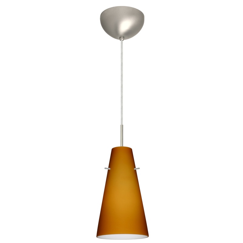 Cierro is a softly tapered narrow cylinder, creating a refined contemporary look. Our Amber Matte glass is a caramel colored cased glass and opal inner layer. The orange glow has a low key harmonious display that exudes a warm mood. When lit the glass is vitalizing as well as stylish. The smooth satin finish on the outer layer is a result of an extensive etching process. This blown glass is handcrafted by a skilled artisan, utilizing century-old techniques passed down from generation to generation. The cord pendant fixture is equipped with a 10′ SVT cord set and an “Easy Install” dome monopoint canopy. These stylish and functional luminaries are offered in a beautiful Satin Nickel finish.