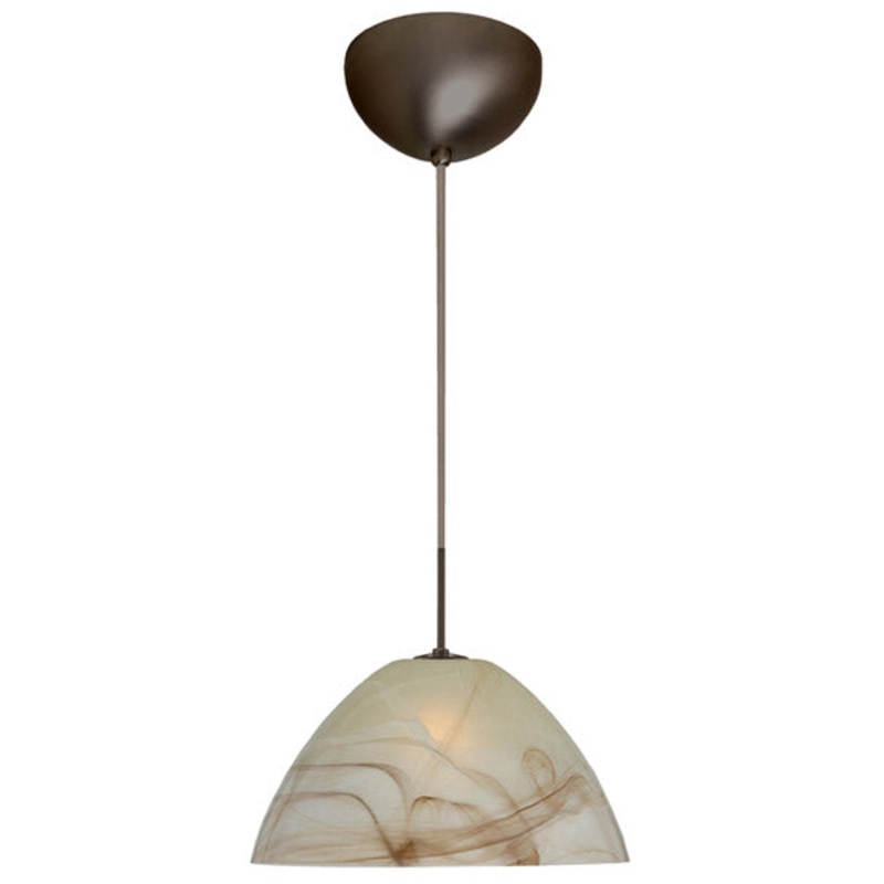 Tessa has a classical bell shape that complements aesthetic, while also built for optimal illumination. Our Mocha glass is a pressed glass that features a cream color that is marbleized with brown. This dcor is classic and can be used in various ways. When lit this gives off a light that is functional and soothing. The smooth satin finish on the clear outer layer is a result of an extensive etching process. This handcrafted glass uses a process where every glass is consistently produced using a press mold, keeping variations to a minimum. The cord pendant fixture is equipped with a 10′ SVT cord set and an “Easy Install” dome monopoint canopy. These stylish and functional luminaries are offered in a beautiful brushed Bronze finish.