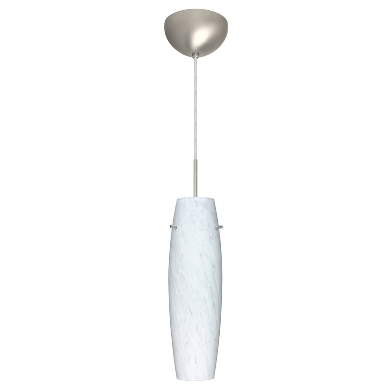 The Suzi is a slender yet shapely handcrafted glass with a open top and bottom. Our Carrera glass is a classic yet modern dcor that gives off a soft white light. Clear molten glass is rolled in alabaster powder like frit, and then blown into shape with a semi-clear frosted white inner finish. This dcor is created by rolling molten glass in small bits of white called frit. The smooth satin finish on the clear outer layer is a result of an extensive etching process. This blown glass is handcrafted by a skilled artisan, utilizing century-old techniques passed down from generation to generation. Each piece of this dcor has its own artistic nature that can be individually appreciated. The cord pendant fixture is equipped with a 10′ SVT cord set and an “Easy Install” dome monopoint canopy. These stylish and functional luminaries are offered in a beautiful Satin Nickel finish.