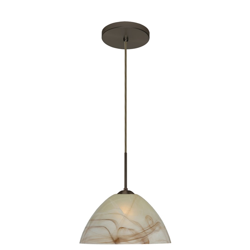 Tessa has a classical bell shape that complements aesthetic, while also built for optimal illumination. Our Mocha glass is a pressed glass that features a cream color that is marbleized with brown. This dcor is classic and can be used in various ways. When lit this gives off a light that is functional and soothing. The smooth satin finish on the clear outer layer is a result of an extensive etching process. This handcrafted glass uses a process where every glass is consistently produced using a press mold, keeping variations to a minimum. The cord pendant fixture is equipped with a 10′ SVT cord set and an low profile flat monopoint canopy. These stylish and functional luminaries are offered in a beautiful brushed Bronze finish.
