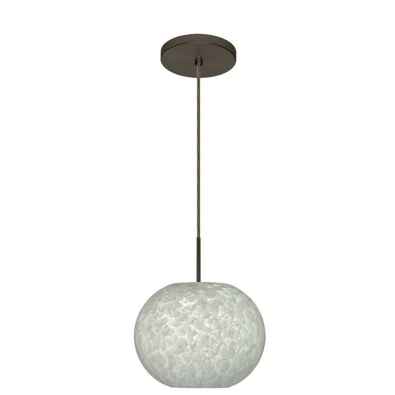 The Luna pendant features a flattened globe-shaped glass, creating a refined contemporary look. Our Carrera glass is a classic yet modern dcor that gives off a soft white light. Clear molten glass is rolled in alabaster powder like frit, and then blown into shape with a semi-clear frosted white inner finish. This dcor is created by rolling molten glass in small bits of white called frit. The smooth satin finish on the clear outer layer is a result of an extensive etching process. This blown glass is handcrafted by a skilled artisan, utilizing century-old techniques passed down from generation to generation. Each piece of this dcor has its own artistic nature that can be individually appreciated. The cord pendant fixture is equipped with a 10′ SVT cord set and an low profile flat monopoint canopy. These stylish and functional luminaries are offered in a beautiful brushed Bronze finish.