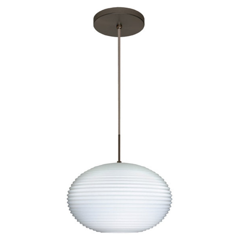 The Pape is a wide yet compact handcrafted glass, with distinctive ridges, softly radiused to fit gracefully into contemporary spaces. Our Opal Ribbed glass is a soft white cased glass that can suit any classic or modern dcor, blown into a faceted mold to create stylish texturing along the outer walls. Opal has a very tranquil glow that is pleasing in appearance. The smooth satin finish on the clear outer layer is a result of an extensive etching process. This blown glass is handcrafted by a skilled artisan, utilizing century-old techniques passed down from generation to generation. The cord pendant fixture is equipped with a 10′ SVT cord set and an low profile flat monopoint canopy. These stylish and functional luminaries are offered in a beautiful brushed Bronze finish.