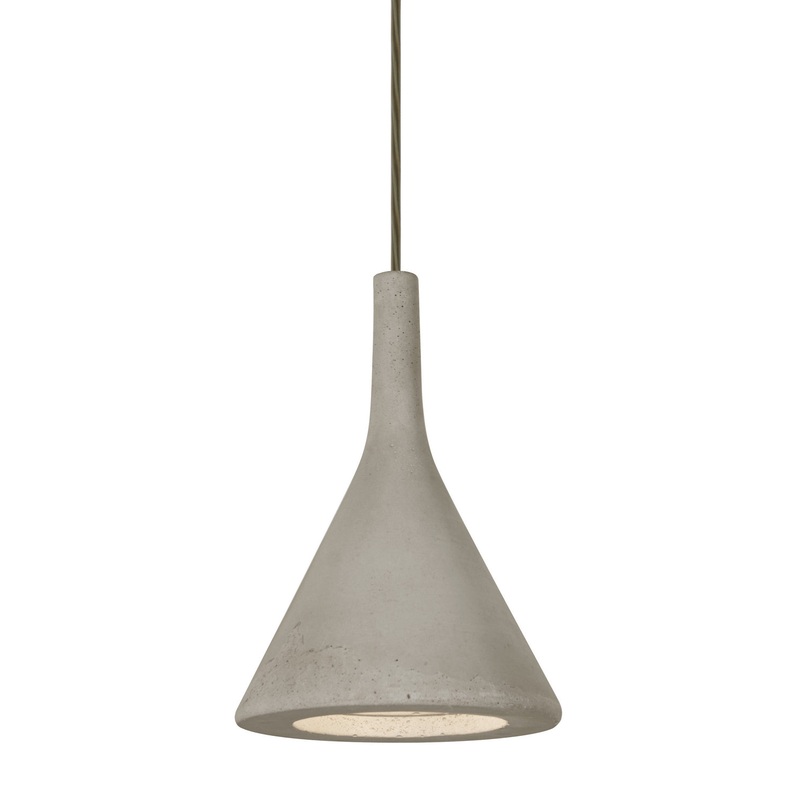 Our Gala tan pendant is equipped with a cement-based conical shade, while concealing a focused light source for effective task lighting. Produced from natural elements and industrially inspired, this pendant offers a look that will easily merge into the recent urban decorating trend. The cord pendant fixture is equipped with a 10′ SVT cordset and an low profile flat monopoint canopy. These stylish and functional luminaries are offered in a beautiful brushed Bronze finish.