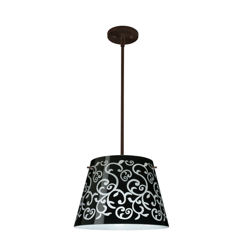 Product Description:Amelia features a tapered drum shape, open at the top, that fits beautifully in transitional spaces. Our Black Damask glass is an art nouveau creation in hand-blown glass. The inside of the glass is etched so the pattern appears frosted