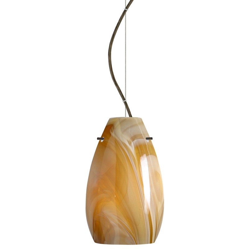 The Pera 9 is a curvy bell-bottomed shape, that fits nicely into any contemporary design. This unique dcor is handcrafted, with layered swirls of yellow-amber and golden-brown against white, finished to a high gloss. Its classic swirl pattern and high gloss surface has a truly florid gleam. Honey is a hand-blown glass designed to have a shiny and polished finish. The glass is gathered and rolled into shape a unique pattern is formed that cannot be replicated. This blown glass is handcrafted by a skilled artisan, utilizing century-old techniques passed down from generation to generation. Each piece of this dcor has its own unique artistic nature that can be individually appreciated. The cable pendant fixture is equipped with a 10′ silver aircraft cable and AWM cord set, and a dome monopoint canopy. These stylish and functional luminaries are offered in a beautiful brushed Bronze finish.