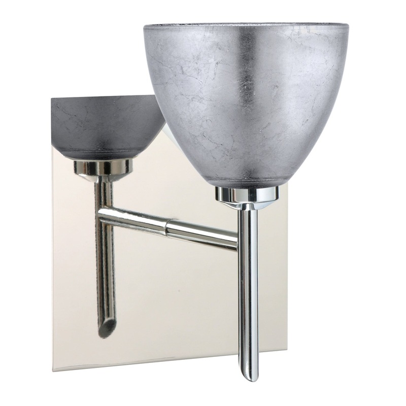 Divi has a classical bell shape that complements aesthetic, while also built for optimal illumination. Our Silver Foil glass is sparkling and metallic. Distressed metal foil is applied to the inner surface of a glossy clear blown glass. This dcor is full of textured and depth, however the outer surface of the glass is smooth. When lit the glass comes to life, as the distressed foil allows glimpses of light to pass through. This blown glass is handcrafted by a skilled artisan, utilizing century-old techniques passed down from generation to generation. Each piece of this dcor has its own artistic nature that can be individually appreciated. The mini sconce is equipped with a decorative lamp holder mounted to either a low profile round or square canopy. These stylish and functional luminaries are offered in a beautiful Chrome finish.
