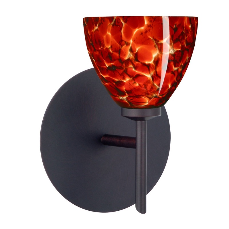 Divi has a classical bell shape that complements aesthetic, while also built for optimal illumination. Our Garnet glass is full of floating, vibrant red tones with a mix of black and white tones behind them. When the glass is lit the fiery color palette illuminates to exude a harmonious display. This dcor is created by rolling molten glass in small bits of deep red hues called frit along with black glass powders. The result is a multi-layered blown glass, where frit color is nestled between an opal inner layer and a clear glossy outer layer. This blown glass is handcrafted by a skilled artisan, utilizing century-old techniques passed down from generation to generation. Each piece of this dcor has its own artistic nature that can be individually appreciated. The mini sconce is equipped with a decorative lamp holder mounted to either a low profile round or square canopy. These stylish and functional luminaries are offered in a beautiful brushed Bronze finish.