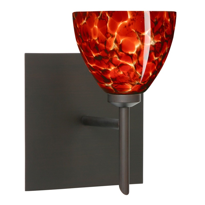 Divi has a classical bell shape that complements aesthetic, while also built for optimal illumination. Our Garnet glass is full of floating, vibrant red tones with a mix of black and white tones behind them. When the glass is lit the fiery color palette illuminates to exude a harmonious display. This dcor is created by rolling molten glass in small bits of deep red hues called frit along with black glass powders. The result is a multi-layered blown glass, where frit color is nestled between an opal inner layer and a clear glossy outer layer. This blown glass is handcrafted by a skilled artisan, utilizing century-old techniques passed down from generation to generation. Each piece of this dcor has its own artistic nature that can be individually appreciated. The mini sconce is equipped with a decorative lamp holder mounted to either a low profile round or square canopy. These stylish and functional luminaries are offered in a beautiful brushed Bronze finish.