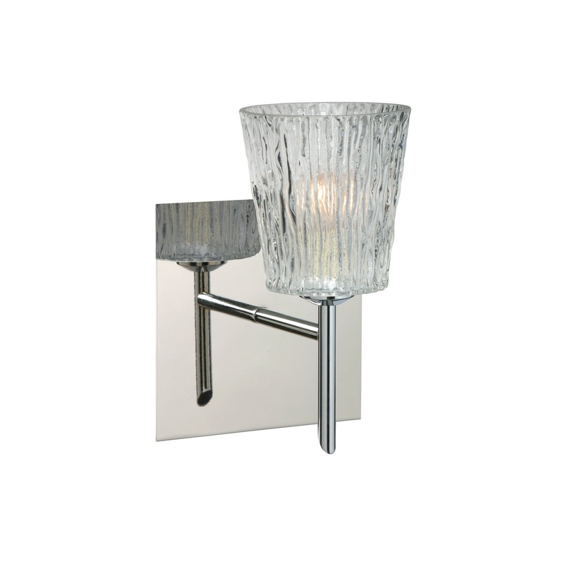 Nico 4 features a tapered drum shape that fits beautifully in transitional spaces. Our Clear Stone glass is a clear blown glass with an outer texture of coarse sandstone. Inspired by the elements of nature, the appearance of the surface resembles the beautiful cut patterning melting ice over a rock formation. This blown glass is handcrafted by a skilled artisan, utilizing century old techniques that have been passed down from generation to generation. Each piece of this dcor has its own artistic nature that can be individually appreciated. The mini sconce is equipped with a decorative lamp holder mounted to either a low profile round or square canopy. These stylish and functional luminaries are offered in a beautiful Chrome finish.