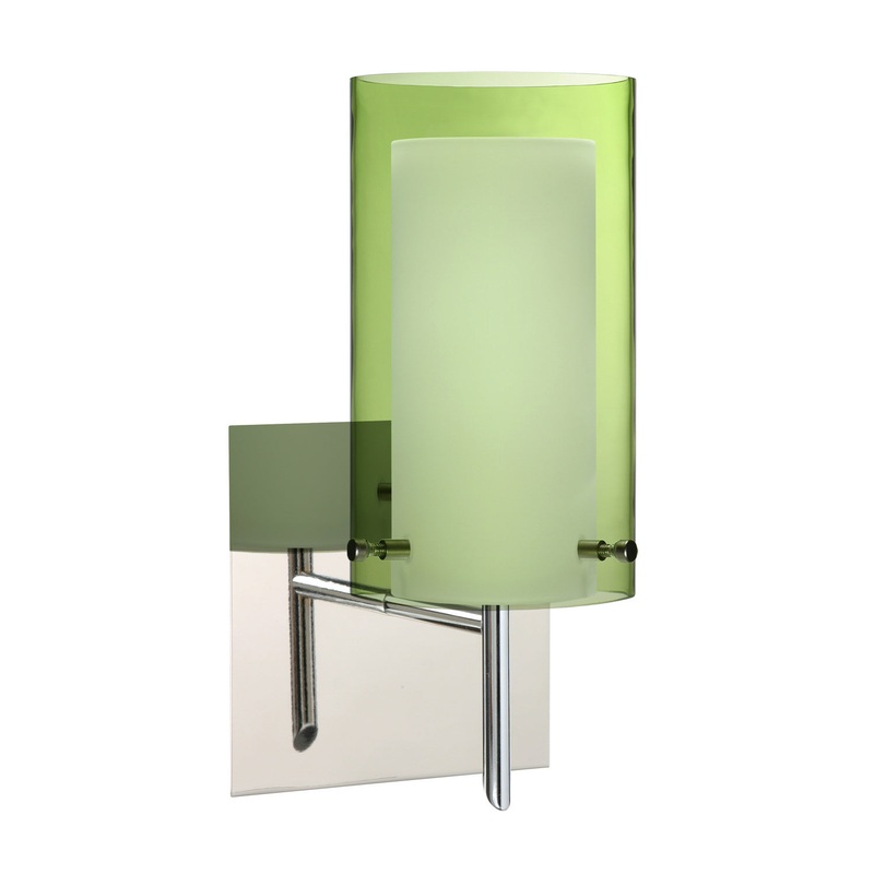 The Pahu is a distinctive double-glass pendant, with an inner opal cylinder centered within a transparent outer glass. Our Trans-Olive colored blown glass complements the soft white Opal cased glass, which can suit any classic or modern decor. Opal has a very tranquil glow that is pleasing in appearance, as the Trans-Olive glass sparkles with the accents from that glow. The smooth satin finish on the opals outer layer is a result of an extensive etching process. This blown glass combination is handcrafted by a skilled artisan, utilizing century-old techniques passed down from generation to generation. The mini sconce is equipped with a decorative lamp holder mounted to either a low profile round or square canopy. These stylish and functional luminaries are offered in a beautiful Chrome finish.