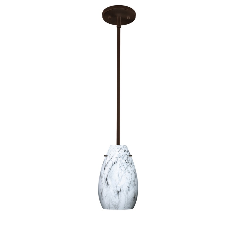 The Pera 9 is a curvy bell-bottomed shape, that fits nicely into any contemporary design. Our Marble Grigio glass is a bright white cased glass, with inner opal and a glossy finish. The white color is accented by flowing marbleized black lines, and nestled between the inner opal and outer clear layers. When lit the glass is vitalizing as well as stylish, that adds appeal to any environment. This blown glass is handcrafted by a skilled artisan, utilizing century-old techniques passed down from generation to generation. Each piece of this dcor has its own artistic nature that can be individually appreciated. The stem pendant fixture is equipped with an adjustable telescoping section, 4 connectable stem sections (3″, 6″, 12″, and 18″) and low Profile flat monopoint canopy. These stylish and functional luminaries are offered in a beautiful brushed Bronze finish.