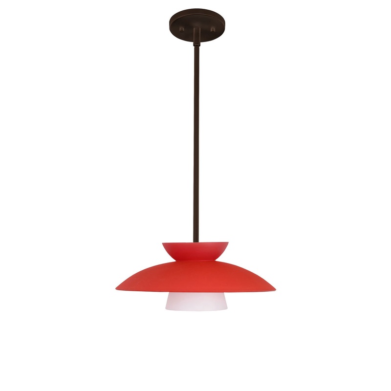 Trilo 15 is comprised of three complementary glass segments, resulting in a playful glass display. Our Red Matte glass is a vibrant primary red pressed glass, with a white inner layer. This dcor can add an edgy, classic, or contemporary feel to any room. When lit this gives off a light that is functional and energetic. The smooth satin finish on the clear outer layer is a result of an extensive etching process. This handcrafted glass uses a process where every glass is consistently produced using a press mold, keeping variations to a minimum. The stem pendant fixture is equipped with an adjustable telescoping section, 4 connectable stem sections (3″, 6″, 12″, and 18″) and low Profile flat monopoint canopy. These stylish and functional luminaries are offered in a beautiful brushed Bronze finish.