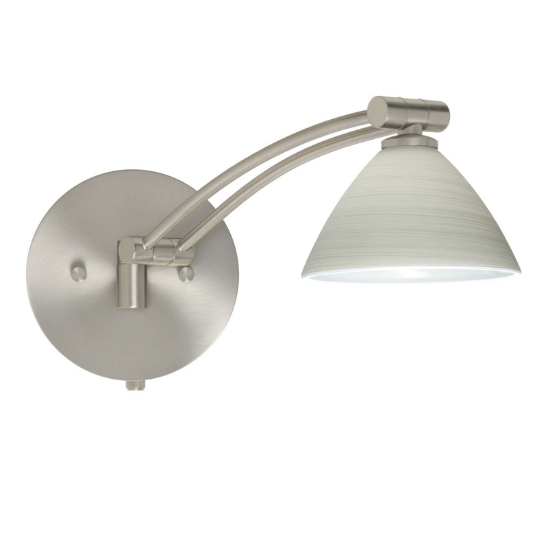 Domi has a classical bell shape that complements aesthetic, while also built for optimal illumination. Our Chalk glass is a soft white opal cased glass that is handcrafted with spiraling strokes of off-white color, emphasizing the subtle brush pattern. The silvery rippled design is subdued and harmonious. Unlit, it appears as simply a textured surface like spun silk, but when lit the texture comes alive. The smooth satin finish on the clear outer layer is a result of an extensive etching process, with the texture of the subtle brushing. This blown glass is handcrafted by a skilled artisan, utilizing century-old techniques passed down from generation to generation. The swingarm fixture includes a 12V electronic transformer and integrated full-range rotary dimmer. The adjustable arm assembly pivots for 130 degree rotation at the canopy, and swings up and down within 180 degree range. These stylish and functional luminaries are offered in a beautiful Satin Nickel finish.