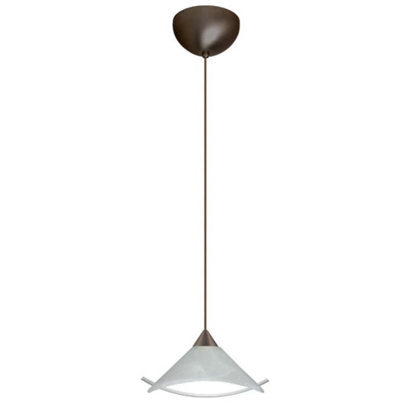 The Hoppi features a wide cone-shaped glass, that demonstrates contemporary sensibilities. Our Marble glass is a pressed glass that features swirls of white throughout semi-translucent frost, to create a faux alabaster appearance. An arched clear rod acts an accent, beautifully playing with the illumination of the fixture. When lit this gives off a light that is functional and soothing. The smooth satin finish on the clear outer layer is a result of an extensive etching process. This handcrafted glass uses a process where every glass is consistently produced using a press mold, keeping variations to a minimum. The 12V cord pendant fixture is equipped with a 10′ coaxial cord with Teflon jacket and an “Easy Install” Dome monopoint canopy. These stylish and functional luminaries are offered in a beautiful brushed Bronze finish.