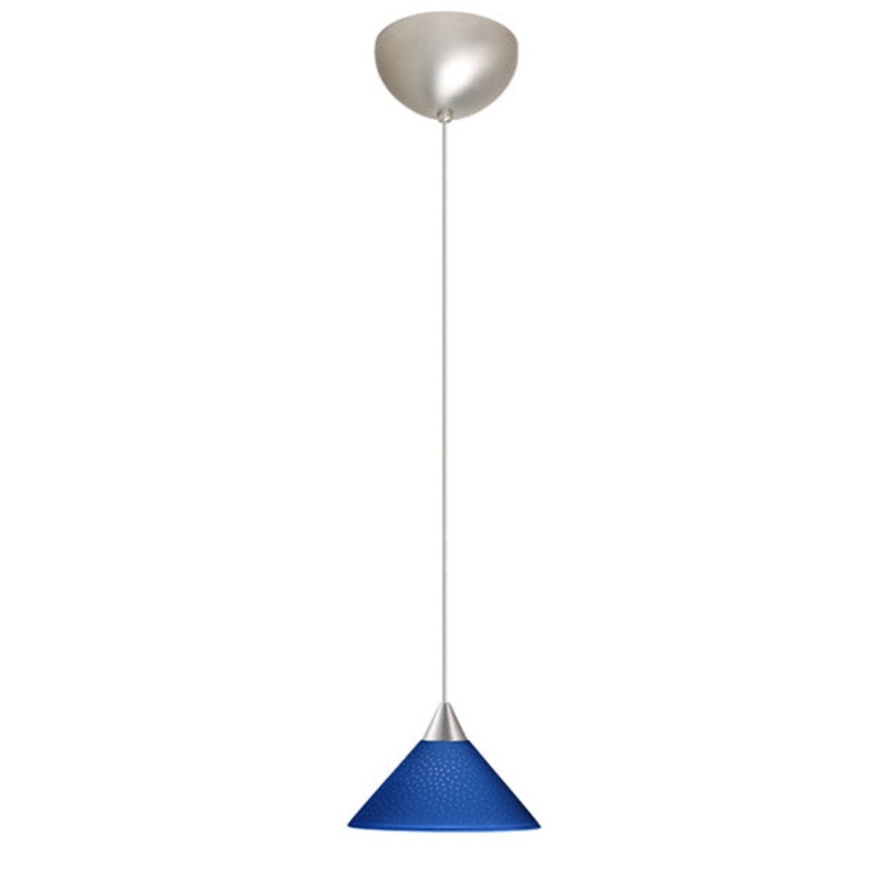 The Kona pendant features a wide cone-shaped glass, that demonstrates contemporary sensibilities. Our Blue Starpoint glass is pressed glass that features small points of clear that project from the blue outer and white inner finish, creating a star-light effect. When lit the glass is vitalizing as well as stylish. The gleaming color can accent any modern or classic dcor. This handcrafted glass uses a process where every glass is consistently produced using a press mold, keeping variations to a minimum. The 12V cord pendant fixture is equipped with a 10′ coaxial cord with Teflon jacket and an “Easy Install” Dome monopoint canopy. These stylish and functional luminaries are offered in a beautiful Satin Nickel finish.