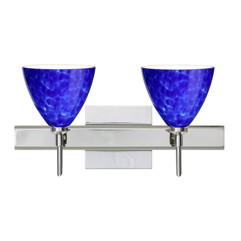 Mia has a classical bell shape that complements aesthetic, while also built for optimal illumination. Our Blue Cloud glass is full of floating, splashes of blue tones over white that almost feels like a watercolor painting. This combination of color is crisp and timeless. This dcor is created by rolling molten glass in small bits of blue hues called frit. The result is a multi-layered blown glass, where frit color is nestled between an opal inner layer and a clear glossy outer layer. The handcrafted touch of a skilled artisan, utilizing century-old techniques passed down from generation to generation, creates variations in color and design that are to be appreciated. The vanity fixture is equipped with decorative lamp holders, removable finials, linear rectangular housing, and a removable low profile oval canopy cover. These stylish and functional luminaries are offered in a beautiful Chrome finish.
