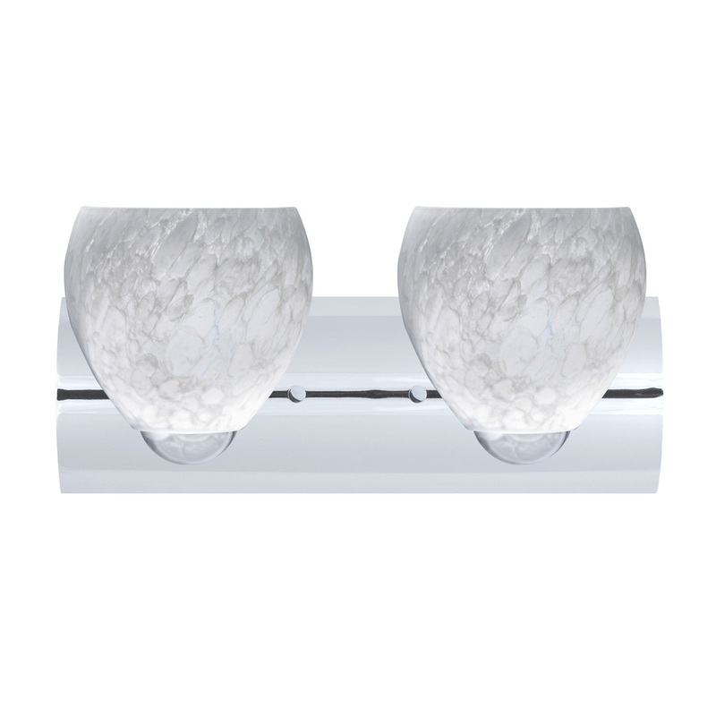 The Bolla is a compact handcrafted glass, softly radiused to fit gracefully into contemporary spaces. Our Carrera glass is a classic yet modern dcor that gives off a soft white light. Clear molten glass is rolled in alabaster powder like frit, and then blown into shape with a semi-clear frosted white inner finish. This dcor is created by rolling molten glass in small bits of white called frit. The smooth satin finish on the clear outer layer is a result of an extensive etching process. This blown glass is handcrafted by a skilled artisan, utilizing century-old techniques passed down from generation to generation. Each piece of this dcor has its own artistic nature that can be individually appreciated. The vanity fixture is equipped with sleek arcing die cast lamp holders and matching radiused rectangular canopy. These stylish and functional luminaries are offered in a beautiful Chrome finish.