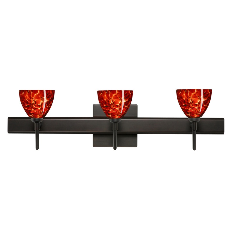Divi has a classical bell shape that complements aesthetic, while also built for optimal illumination. Our Garnet glass is full of floating, vibrant red tones with a mix of black and white tones behind them. When the glass is lit the fiery color palette illuminates to exude a harmonious display. This dcor is created by rolling molten glass in small bits of deep red hues called frit along with black glass powders. The result is a multi-layered blown glass, where frit color is nestled between an opal inner layer and a clear glossy outer layer. This blown glass is handcrafted by a skilled artisan, utilizing century-old techniques passed down from generation to generation. Each piece of this dcor has its own artistic nature that can be individually appreciated. The vanity fixture is equipped with decorative lamp holders, removable finials, linear rectangular housing, and a removable low profile oval canopy cover. These stylish and functional luminaries are offered in a beautiful brushed Bronze finish.