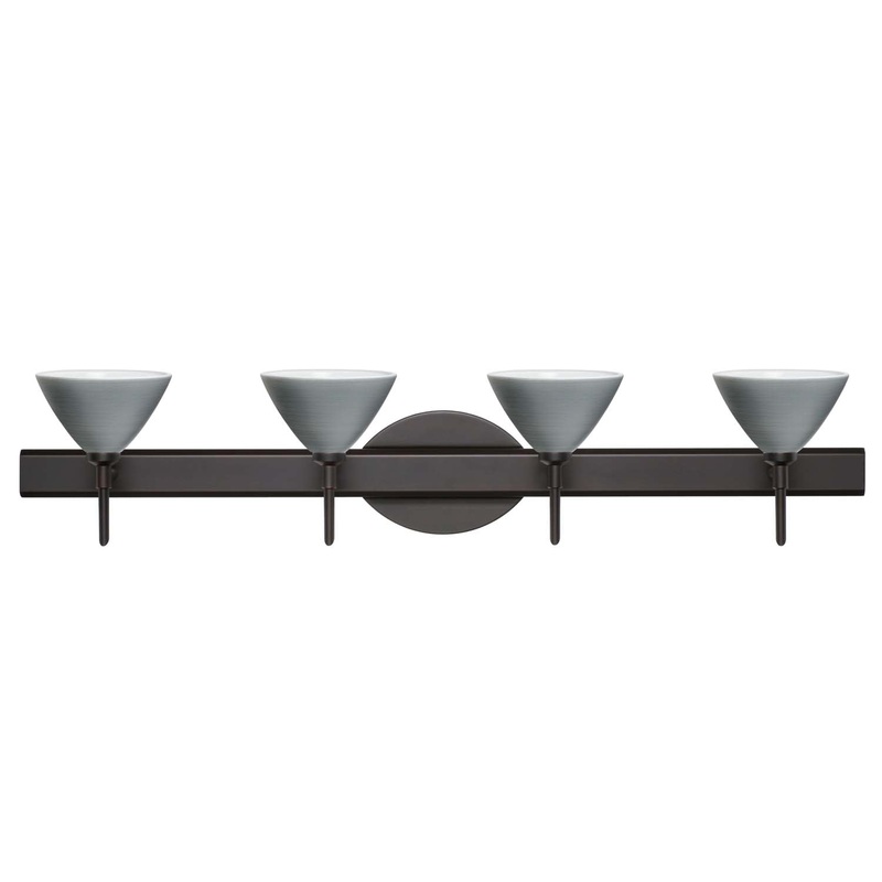 Domi has a classical bell shape that complements aesthetic, while also built for optimal illumination. Our Titan glass is a soft off-white cased glass that is handcrafted with spiraling strokes of silver, emphasizing the subtle brush pattern. The silvery rippled design is subdued and harmonious. Unlit, it appears as simply a textured surface like spun silk, but when lit the texture comes alive. The smooth satin finish on the clear outer layer is a result of an extensive etching process, with the texture of the subtle brushing. This blown glass is handcrafted by a skilled artisan, utilizing century-old techniques passed down from generation to generation. The vanity fixture is equipped with decorative lamp holders, removable finials, linear rectangular housing, and a removable low profile oval canopy cover. These stylish and functional luminaries are offered in a beautiful brushed Bronze finish.