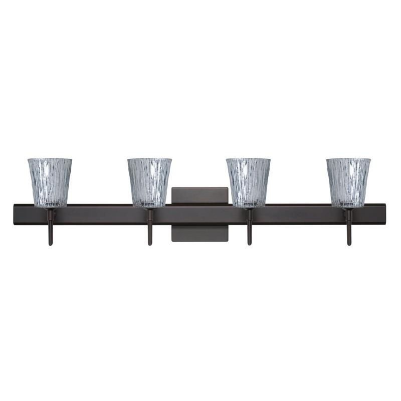 Nico 4 features a tapered drum shape that fits beautifully in transitional spaces. Our Stone Silver Foil glass is a clear blown glass with an outer texture of coarse sandstone, with distressed metal foil hand applied to the inside. Inspired by the elements of nature, the appearance of the surface resembles the beautiful cut patterning of a rock formation. This blown glass is handcrafted by a skilled artisan, utilizing century old techniques that have been passed down from generation to generation. Each piece of this dcor has its own artistic nature that can be individually appreciated. The vanity fixture is equipped with decorative lamp holders, removable finials, linear rectangular housing, and a removable low profile oval canopy cover. These stylish and functional luminaries are offered in a beautiful brushed Bronze finish.