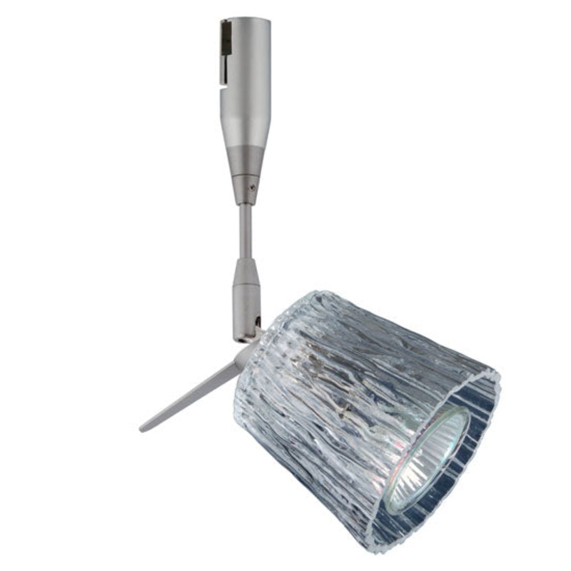 Nico 3 features a tapered drum shape that fits beautifully in transitional spaces. Our Clear Stone glass is a clear blown glass with an outer texture of coarse sandstone. Inspired by the elements of nature, the appearance of the surface resembles the beautiful cut patterning melting ice over a rock formation. This blown glass is handcrafted by a skilled artisan, utilizing century old techniques that have been passed down from generation to generation. Each piece of this dcor has its own artistic nature that can be individually appreciated. The 12V spotlight fixture is equipped with a 1.5″ long stem, swivel lamp holder, quick connect jack and Besa Rail Adapter. These stylish and functional luminaries are offered in a beautiful Satin Nickel finish.