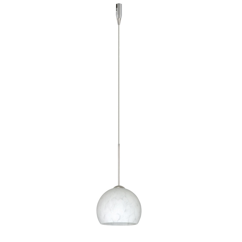 The Palla 5 features a diminutive orb-shaped glass, that complements any aesthetic. Our Carrera glass is a classic yet modern dcor that gives off a soft white light. Clear molten glass is rolled in alabaster powder like frit, and then blown into shape with a semi-clear frosted white inner finish. This dcor is created by rolling molten glass in small bits of white called frit. The smooth satin finish on the clear outer layer is a result of an extensive etching process. This blown glass is handcrafted by a skilled artisan, utilizing century-old techniques passed down from generation to generation. Each piece of this dcor has its own artistic nature that can be individually appreciated. The 12V cord pendant fixture is equipped with a 10′ coaxial cord set with Teflon jacket, quick connect jack and a Besa Rail Adapter. These stylish and functional luminaries are offered in a beautiful Satin Nickel finish.