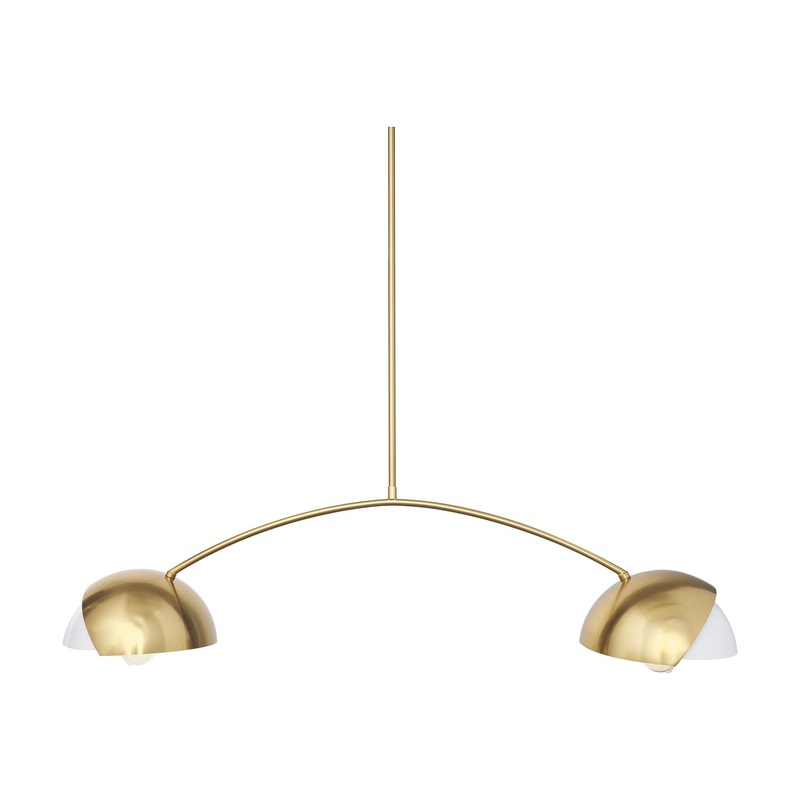 The Cybill Chandelier exemplifies a modern design that combines sleek aesthetics with functional brilliance. Featuring a gold-finished iron metal frame and two powder-coated matte white metal shades, this chandelier exudes an understated elegance that comp