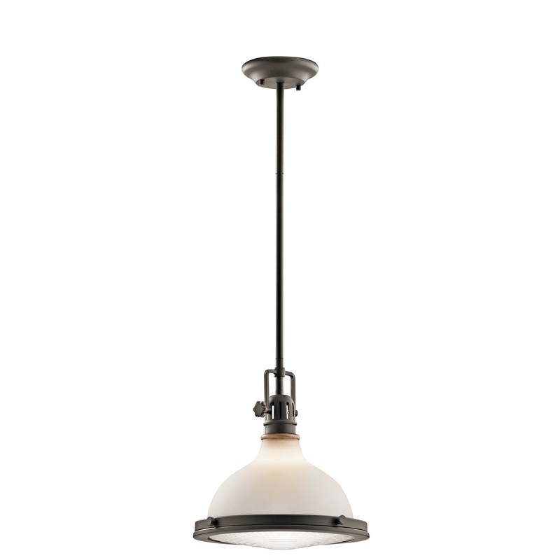 The Hatteras Bay 12″ 1 light pendant features a classic industrial look with its Olde Bronze finish and satin etched white glass bowl and clear fresnel lens. The Hatteras Bay pendant works in several aesthetic environments, including vintage industrial, traditional and transitional.