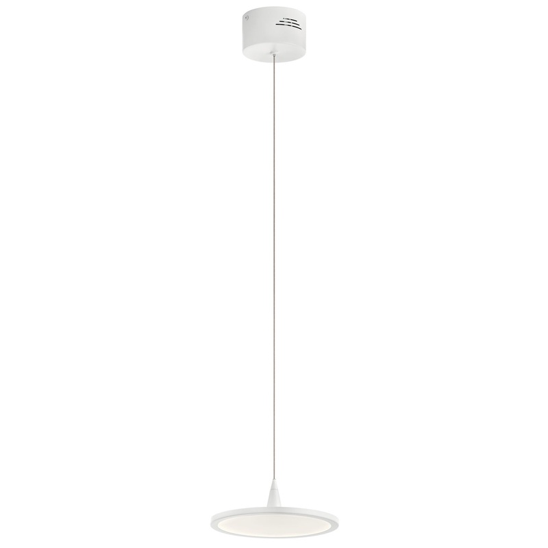 Simple looks can be eye-catching too. Jeno`s White Finish and White Acrylic Diffuser work together with the disc shape and conical fixture top detail to create a Pendant that provides functional illumination and a focal piece.Details:Product Type: CableFin