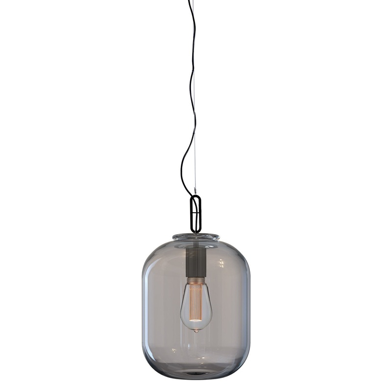 Pendant Max 9″ Grey Glass Black Finish E26 Penny Lane LED Clear ST64 2200K