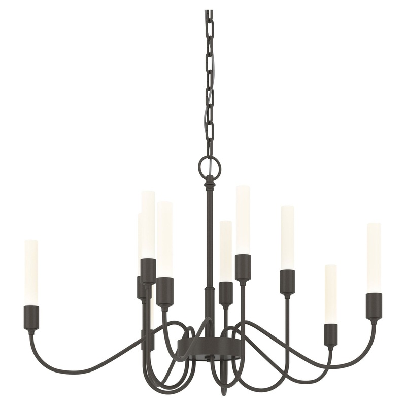 Finely formed, 10 steel arms curve upward to support slender glass that look like the tulip buds that might be found in the town of Lisse in Holland. Inspired by Holland, but crafted by artisans here at our Vermont forge, each piece is unique.