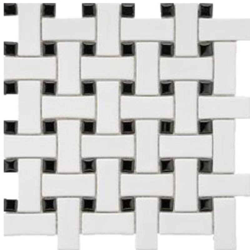 Roca Tile Usa Inc United States Ceramic Tile Cc Mosaics Ii Matte White With Black Dot Basketweave Porcelain Mosaics. Ufcc107-12Mt 1 Sheet = .97 Sq. Ft.