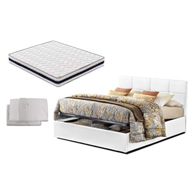 - Struttura letto con box contenitore matrimoniale rivestimento in similpelle bianco imbottito ,Sistema di apertura azionato tramite molle a gas che permettono di sollevare agevolmente, attraverso la maniglia di presa, rete e materasso. Il movimento consente di accedere con facilit al vano contenitore e rifare comodamente il letto.