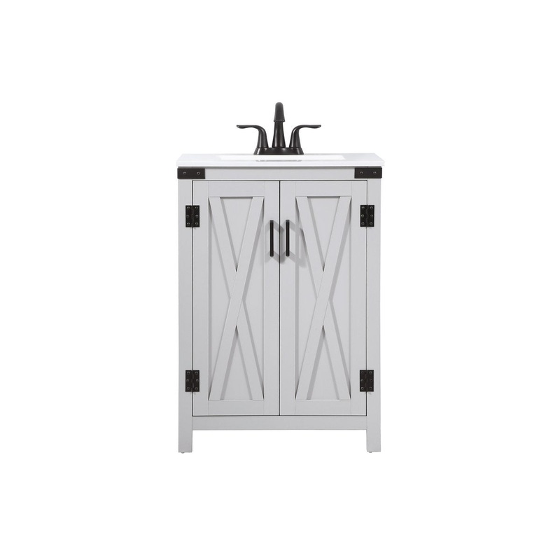 Reminiscent of barn doors, the 2 door cabinet adds both stylistic charm and function with its plethora of storage options for all your bathroom essentials. Whether for your bathroom or the guests`, everyone will marvel at its classic look for traditional and farmhouse aesthetics. A slab of quartz rounds out the piece up top, as well as the porcelain under mount sink and predrilled faucet holes. This vanity arrives fully assembled.