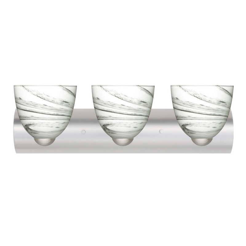Sasha has a classical bell shape that complements aesthetic, while also built for optimal illumination. Our Marble Grigio glass is a bright white cased glass, with inner opal and a glossy finish. The white color is accented by flowing marbleized black lines, and nestled between the inner opal and outer clear layers. When lit the glass is vitalizing as well as stylish, that adds appeal to any environment. This blown glass is handcrafted by a skilled artisan, utilizing century-old techniques passed down from generation to generation. Each piece of this dcor has its own artistic nature that can be individually appreciated. The vanity fixture is equipped with sleek arcing die cast lamp holders and matching radiused rectangular canopy. These stylish and functional luminaries are offered in a beautiful Satin Nickel finish.
